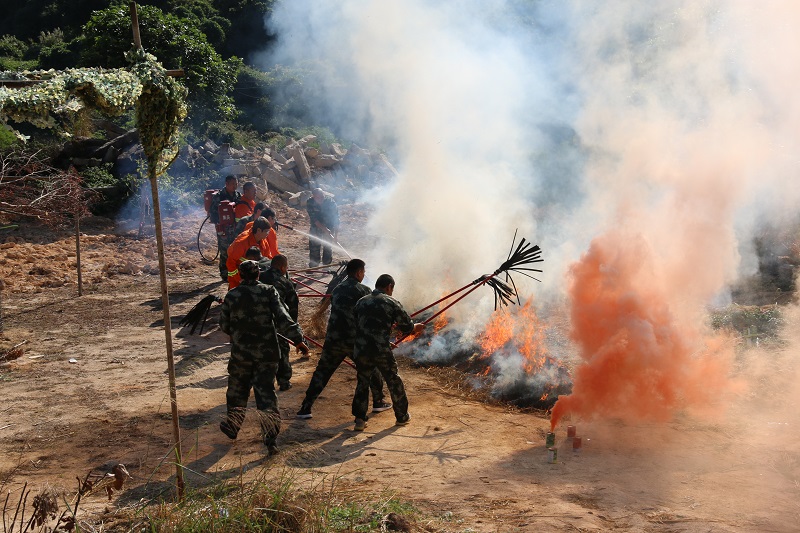 此次演练以村民抓马蜂违规用火酿成森林火灾为背景,首次在山林实地布设真实火线,突出早期镇(村)级火情处理、中期区级森防指火情处置、后期市级森防指开设火场前线指挥部并组织火场扑救三个环节,采取市区两级指挥部“同步响应、分级指挥、属地为主”的处置过程,是一次对扑救森林火灾过程中初火处置、现场指挥、火情侦察、医疗救护、协同作战等能力的全面检验。